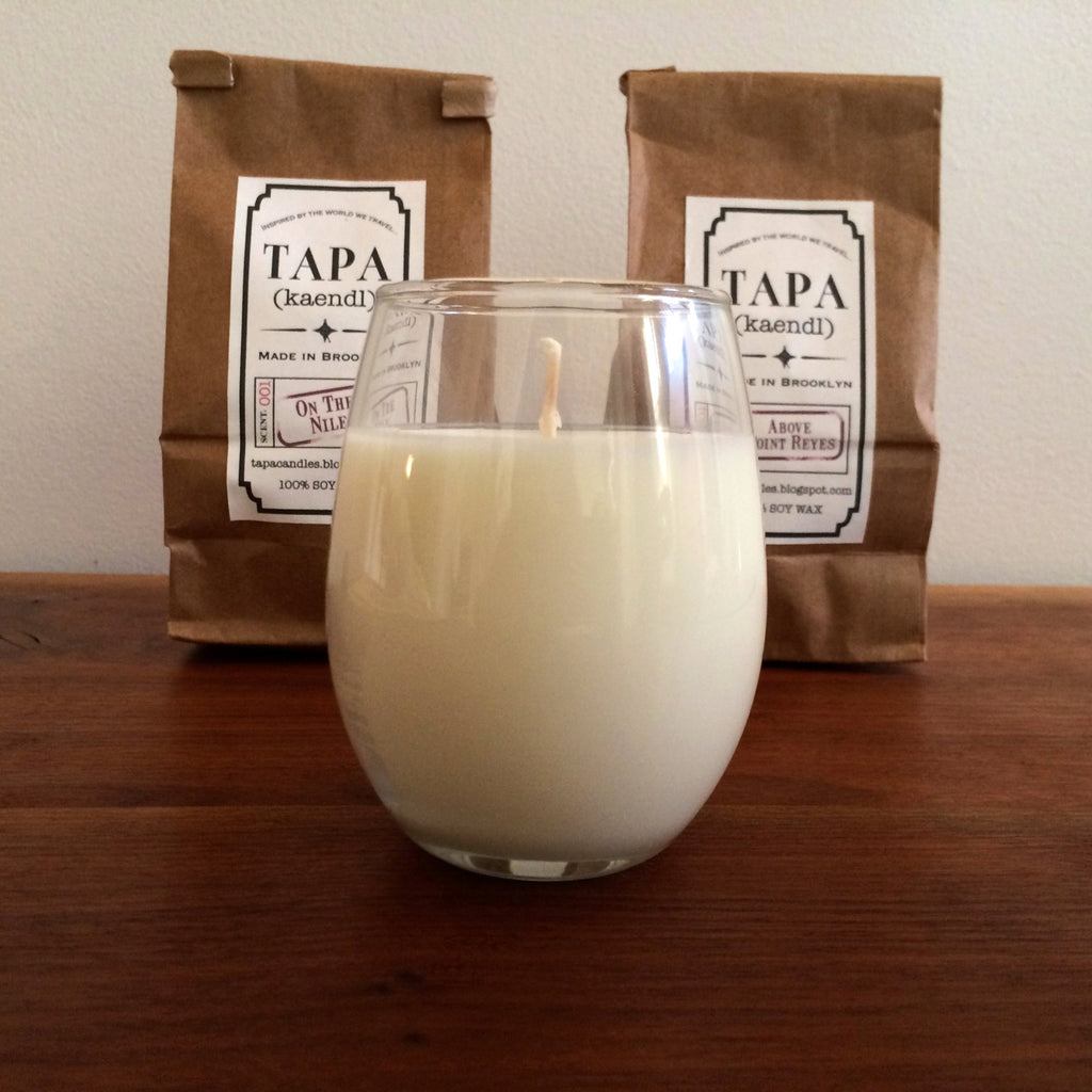 Candles are with made with 100% soy wax, essential, & natural base oils, and come in a re-usable drinking glass